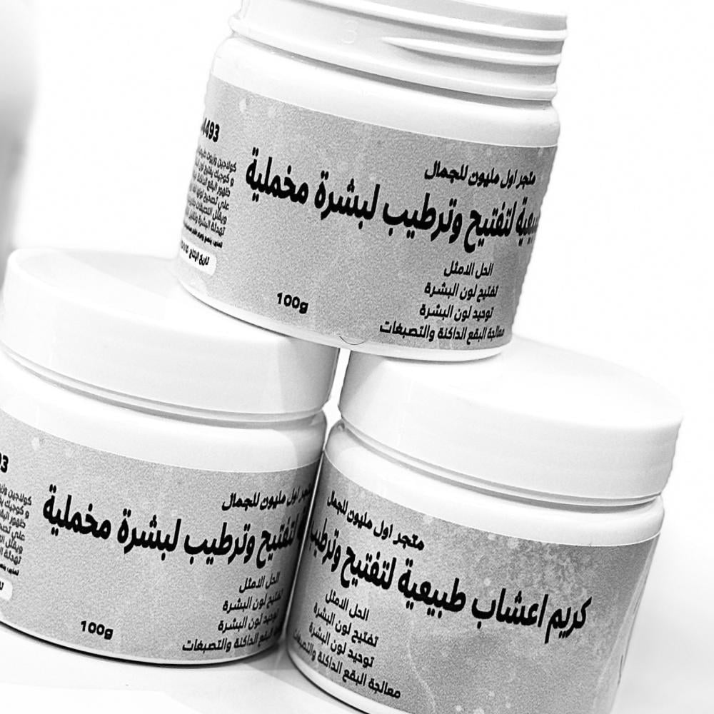 مسحوق الفا اربوتين ومستخلص عرق السوس والكولاجين وحمض الهايلورنيك اسيد و الزيوت الطبيعية و زبده الشيا و الكاكاو للترطيب العميق و تخفيف التشققات